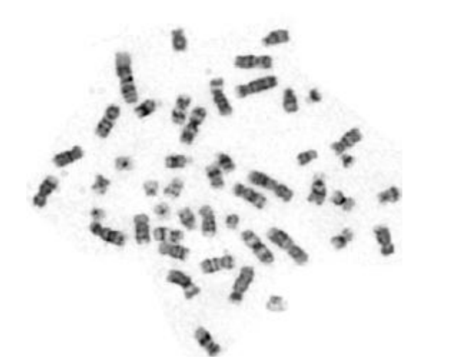 染色体核型(karyotyping)是一种根据体细胞中全套染色体带型形态特征和大小顺序排列,并依次配对、分组,构成该个体的核型或染色体组型的方法,从而可以识别和分析染色体结构和数量的异常,成为产前诊断或肿瘤细胞遗传学的工具。其中使用吉姆莎(Giemsa)染色,即经过胰蛋白酶处理后,进行吉姆莎染料染色,呈现系列深浅不一的300至400个条带,称之为G-带。其中浅色条带为异染色质、复制晚期以及AT丰富的区域,而深色条带为常染色质(euchromatic)、复制早期和GC丰富的区域。